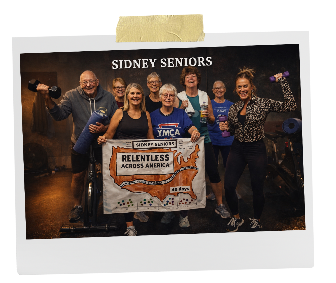 Sidney Senior: This group of seasoned adults has taken over their local YMCA spin room and crushed this challenge. I just hope Phil (pictured on the left) didn’t carry that water bottle the entire way. Holy smokes that is a lot of water!