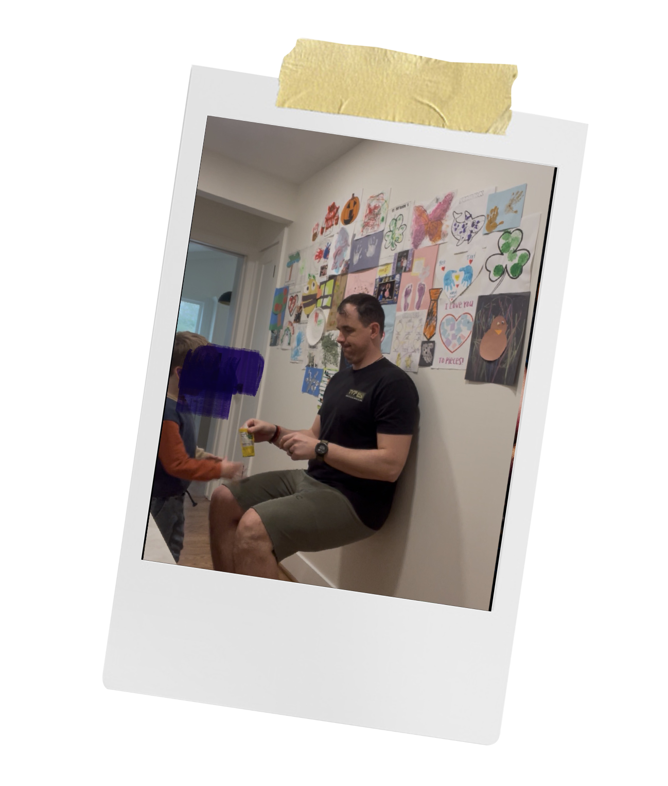 Kevin and The Bonus Challenge: You guys, check out Kevin. While doing a Bonus Challenge wall sit, his son asked for a snack. Kevin did both. “Father of the Year!”