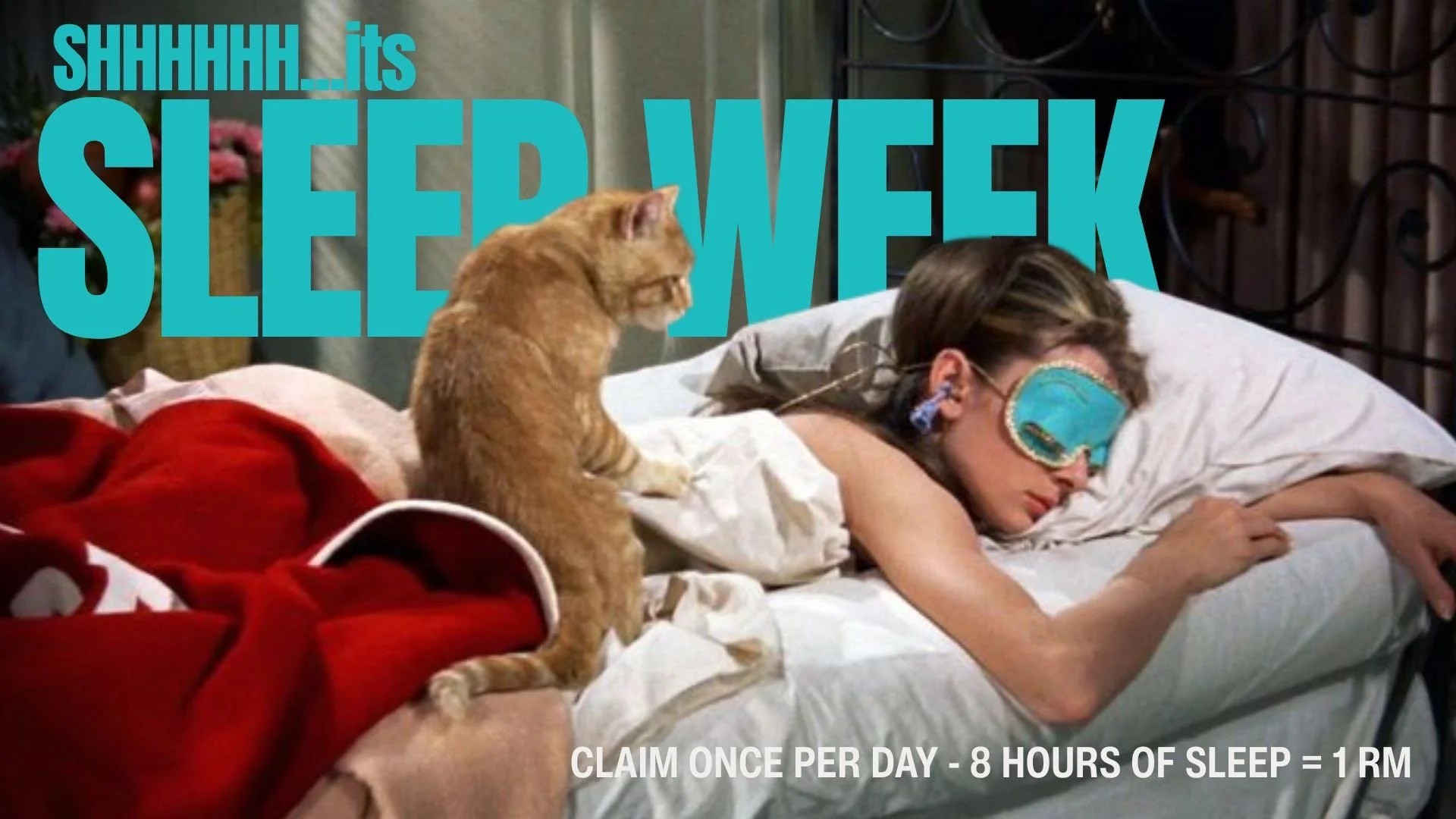 Monday we’re dropping Sleep Week. One of the healthiest things you can do for your body is sleep. (Did you know LeBron James often sleeps 10 hours a night, and on game days adds a 2-hour nap? That’s 12 hours. LeBron knows.) Next week, any time you get a solid 8-hours, you can log it for 1 RM. Sweet!